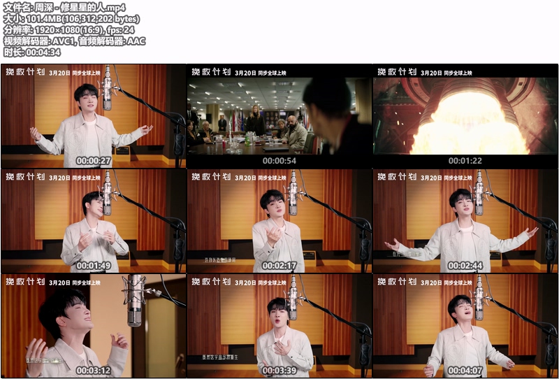 周深 - 修星星的人 (电影《挽救计划》中文主题曲)(WEB-101M) 1080P 2小时前 华语类MV 2 0 推广 歌手:周深 专辑:修星星的人 语种:国语 唱片公司:℗ 2026 腾讯音乐娱乐集团(制作家) 发行时间:2026-03-18 资源下载下载价格VIP专享仅限VIP下载升级VIP立即购买如有发现链接失效,请联系网站管理 0 0 修星星的人周深
