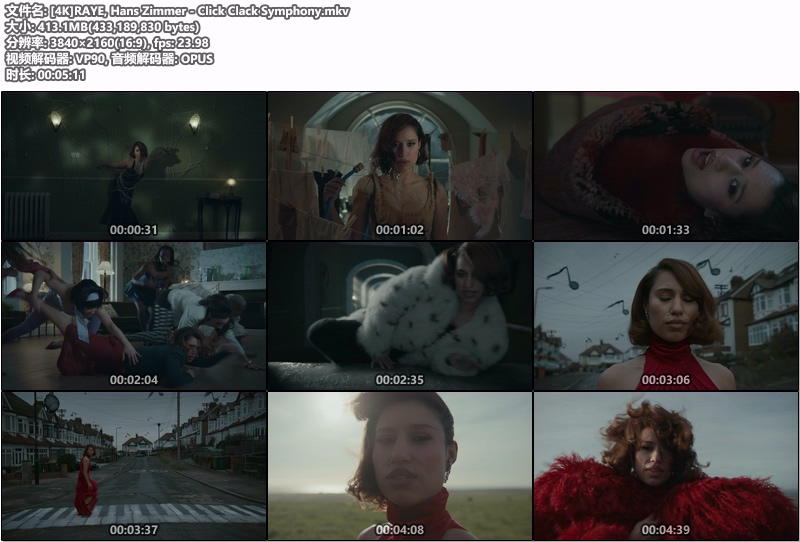 RAYE, Hans Zimmer - Click Clack Symphony(MKV-413M) 4K 2小时前 4K MV 6 0 推广 歌手:RAYE /Hans Zimmer 专辑:Click Clack Symphony. (feat. Hans Zimmer) 语种:英语 唱片公司:Human Re Sources 发行时间:2026-03-20 资源下载下载价格VIP专享仅限VIP下载升级VIP立即购买如有发现链接失效,请联系网站管理 0 0 Click Clack SymphonyHans ZimmerRAYE